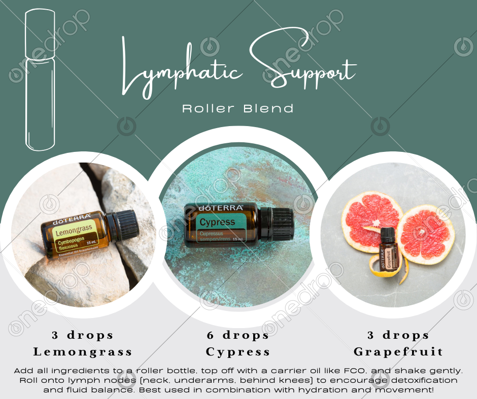 👉 Roll onto lymph nodes (neck, underarms, behind knees) to encourage detoxification and fluid balance. Best used in combination with hydration and movement!