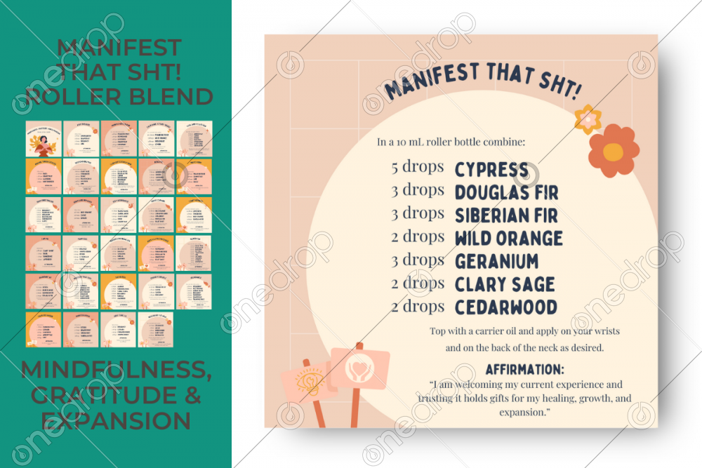 This graphic is part of the Mindfulness, Gratitude, and Expansion Collection. The Collection highlights each topic including daily roller or diffuser blends and affirmations. (The Done-For-You-Copy is downloaded separately). All the graphics for the collection are below!