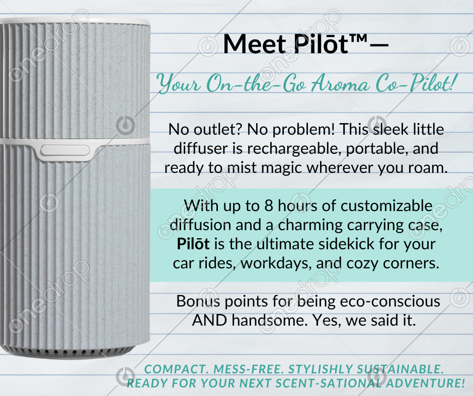 With up to 8 hours of customizable diffusion and a charming carrying case, Pilōt is the ultimate sidekick for your car rides, workdays, and cozy corners.