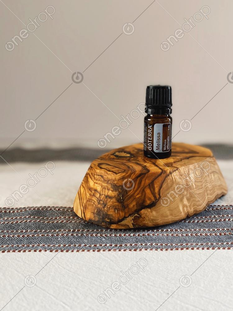 An image of Melissa Essential Oil and 2 premade graphics sized for social media including Facebook or Instagram.