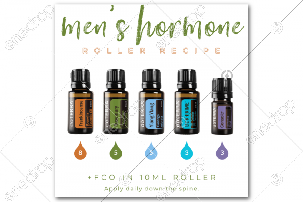 Use this Men’s Hormone roller blend to support men’s hormones and endocrine system. It includes: Frankincense, Rosemary, Ylang Ylang, DDR Prime®, and dōTERRA Console®. Apply topically down the spine daily.