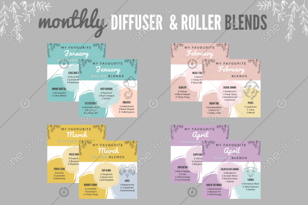 12 month supply of MONTHLY seasonal diffuser & roller blends social media posts – suitable to share with your community throughout the year!