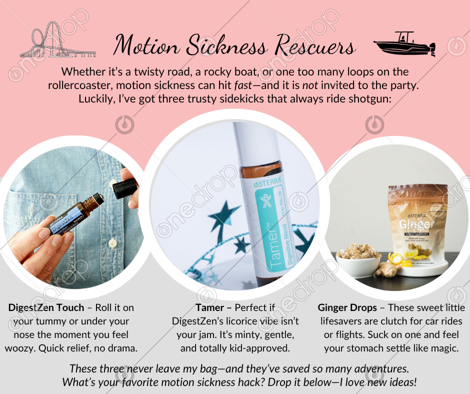 Whether it’s a twisty road, a rocky boat, or one too many loops on the rollercoaster, motion sickness can hit fast—and it is not invited to the party. 😵💫