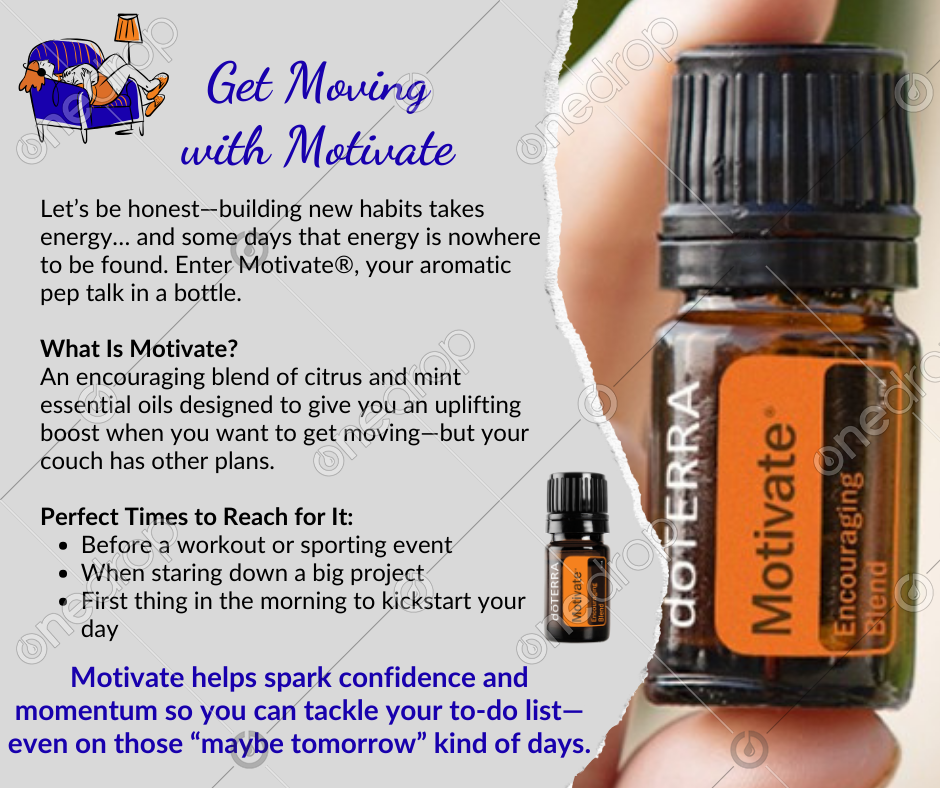 Let’s be honest—building new habits takes energy… and some days that energy is nowhere to be found. Enter Motivate®, your aromatic pep talk in a bottle. 😄