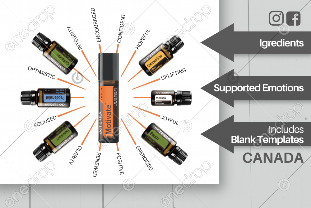 - Includes images of the following oils that are in doTERRA Motivate Touch, Essential Oil Blend