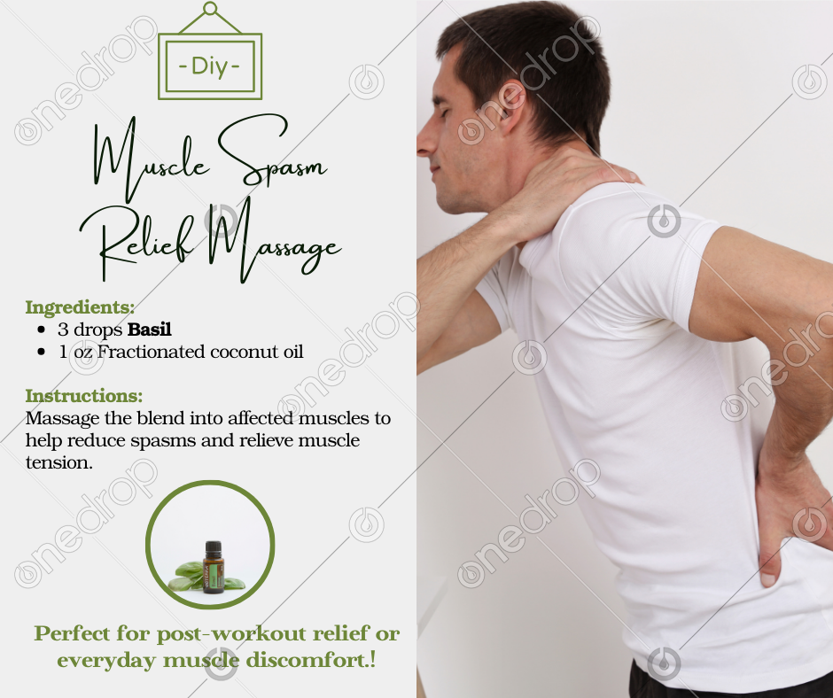 Ease muscle spasms and tension with this natural Basil massage blend! Perfect for post-workout relief or everyday muscle discomfort.