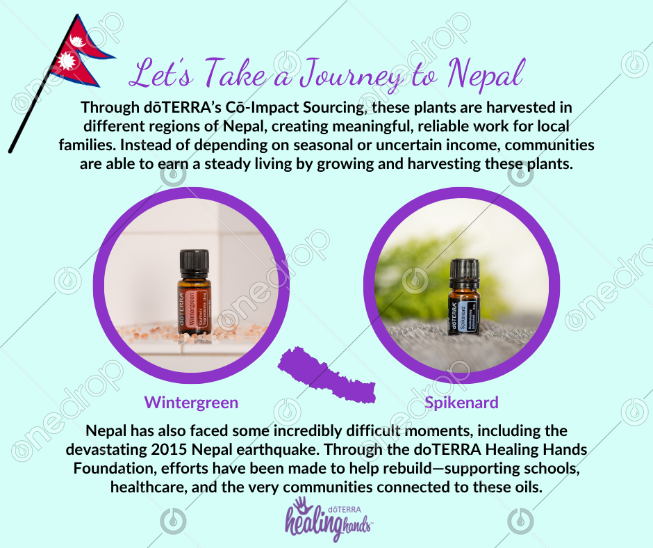 Let’s take a little journey to Nepal… a place filled with breathtaking landscapes, rich traditions, and beautifully diverse cultures. It’s also where two incredible oils come from: Wintergreen and Spikenard.