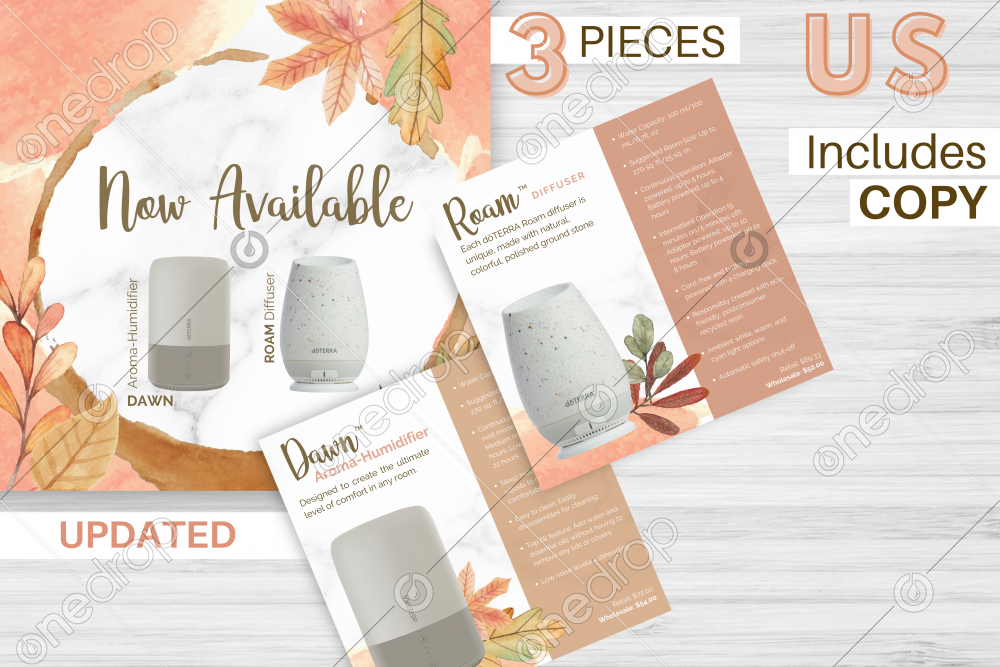 - lists product description and image of diffuser/aroma-humidifier with a watercolor fall theme