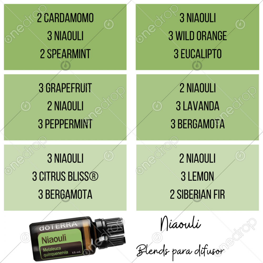 Idéias de blends para difusor com Niaouli.