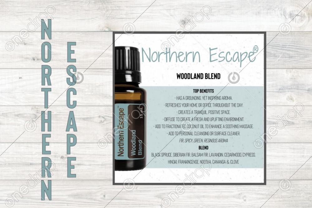 Square infographic with benefits & usage tips of Northern Escape Essential Oil.