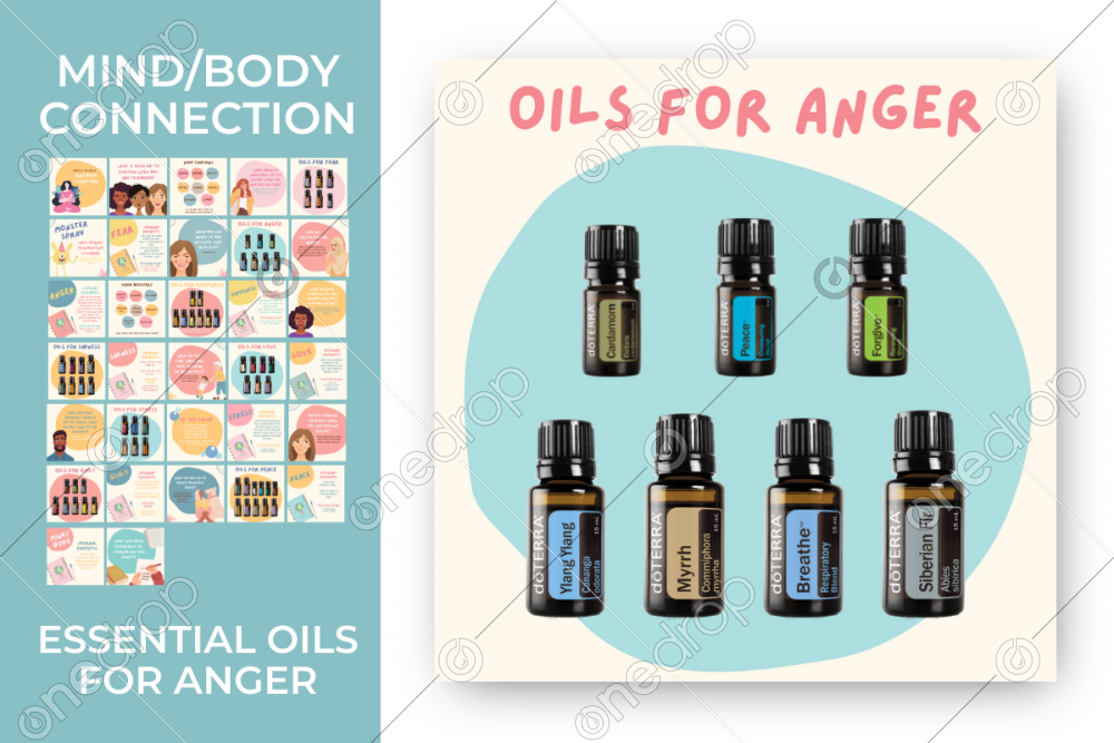This graphic is part of the Mind/Body Connection Collection. The Collection highlights 8 emotions with journal prompts, suggested essential oils for support, and a understanding of each emotion. (The Done-For-You-Copy is downloaded separately). All the graphics for the collection are below!