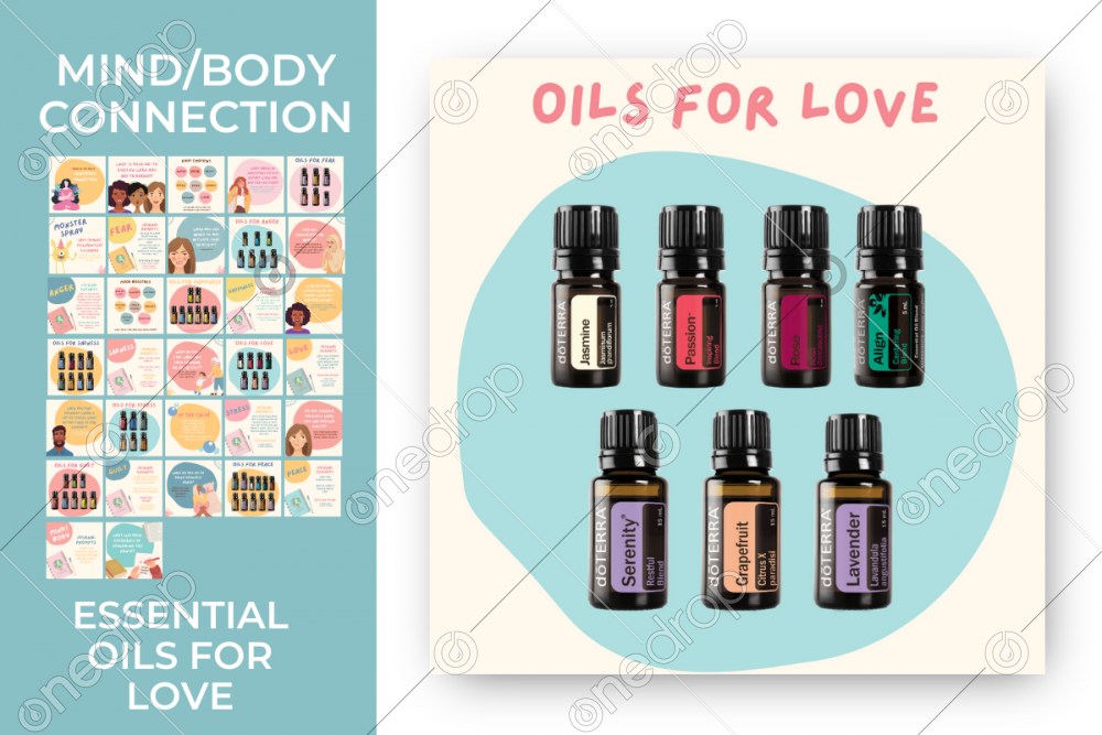 This graphic is part of the Mind/Body Connection Collection. The Collection highlights 8 emotions with journal prompts, suggested essential oils for support, and a understanding of each emotion. (The Done-For-You-Copy is downloaded separately). All the graphics for the collection are below!