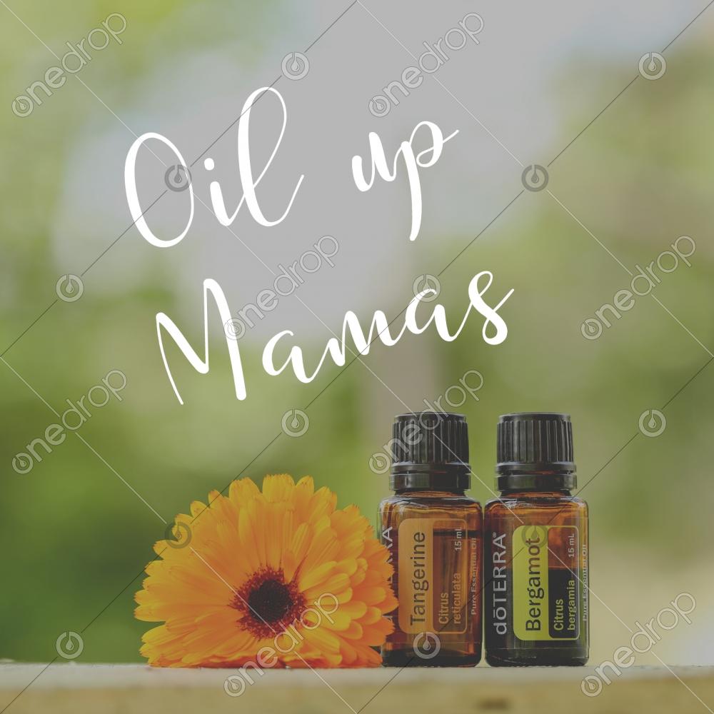 "Oil Up Mamas" Square quote graphic with Bergamot and Tangerine