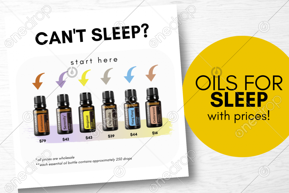 Perhaps, you've been chatting with a someone about how they can sleep better. Text this simple grahic to offer suggestions of oils to start with. Prices are included with a good range to choose from.