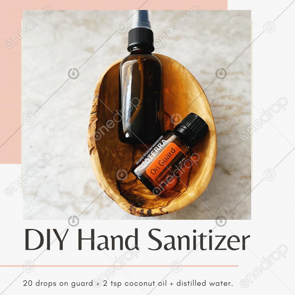 A pre-made graphic with On Guard featured, and a DIY recipe to make hand sanitizer included.