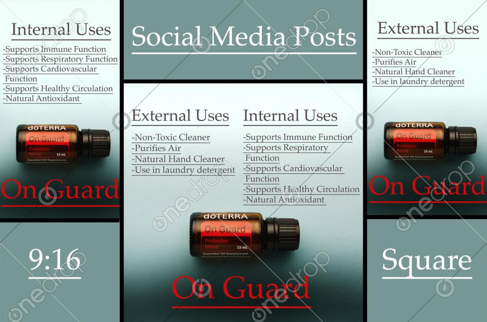On Guard oil blend on a blue background, with and without graphics. 4 files in the download