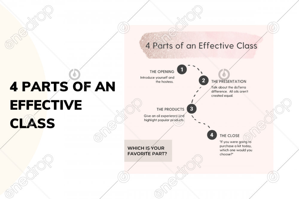 Show how to have an effective class and what it looks like: opening, presentation, the products, and the close.