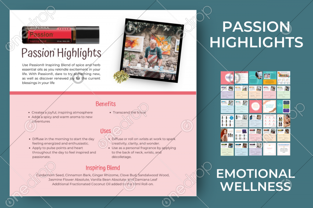 This graphic is part of the Emotional Wellness Collection with the Done-For-You-Copy. The topics include mood & oils, AromaTouch® Technique, and highlights of the Kid’s Collection and Emotional Aromatherapy® Kit essential oils. (The Done-For-You-Copy is downloaded separately). All the graphics for the collection are below!