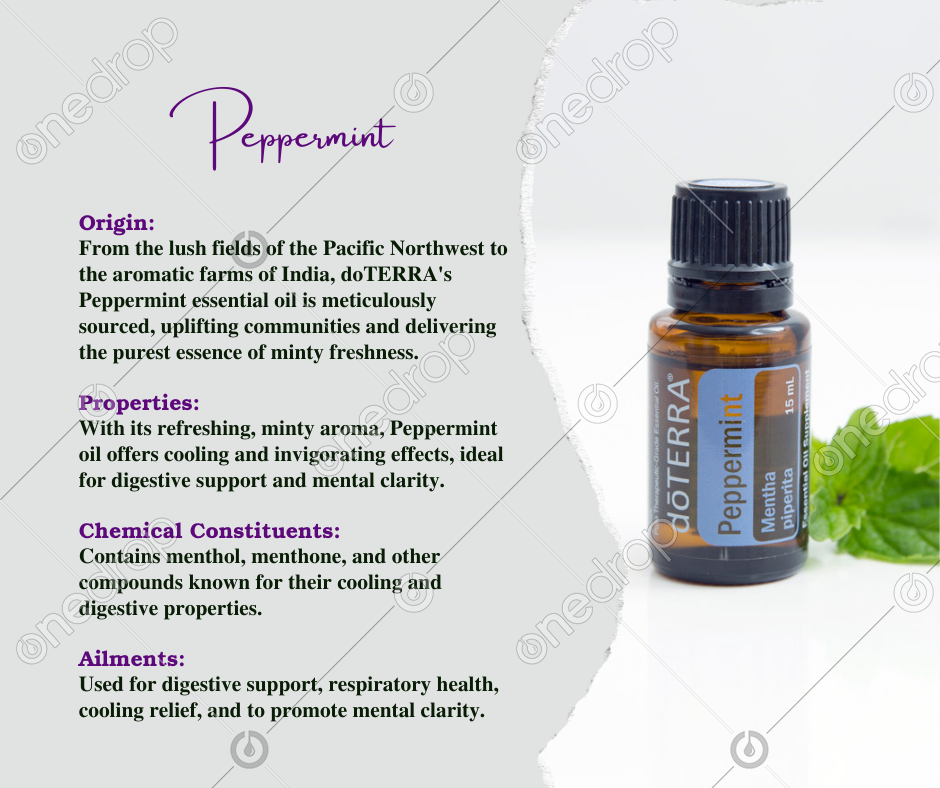 Harvested from the verdant fields of India and the lush landscapes of the Pacific Northwest, Peppermint essential oil offers a refreshing burst of minty freshness. Known for its cooling sensation, Peppermint promotes alertness, soothes digestion, and alleviates discomfort.