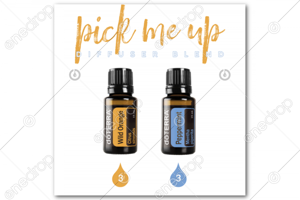 This square graphic features the Pick Me Up diffuser blend recipe with Wild Orange and Peppermint.