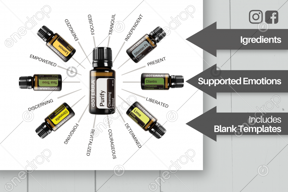 - Includes images of the following oils that are in dōTERRA Purify; Lemon, Siberian Fir, Citronella, Lime, Tea Tree, and Cilantro