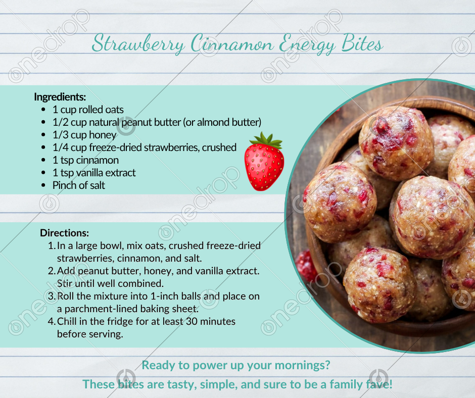 Say hello to Strawberry Cinnamon Energy Bites — delicious little powerhouses perfect for kids and adults on the move. Easy to prep ahead and great for lunchboxes, car rides, or those “hangry” moments between meals.