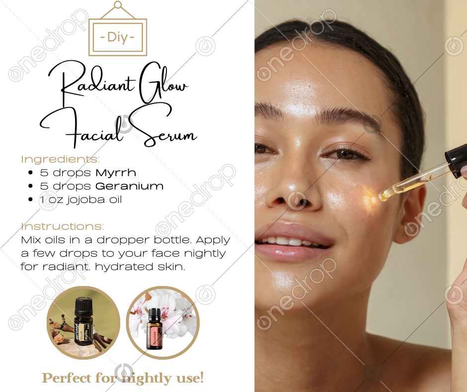 Myrrh soothes and supports skin’s natural health, while Geranium promotes balance and hydration. Together, they’re like a spa in a bottle, giving your complexion that just-back-from-vacation glow.