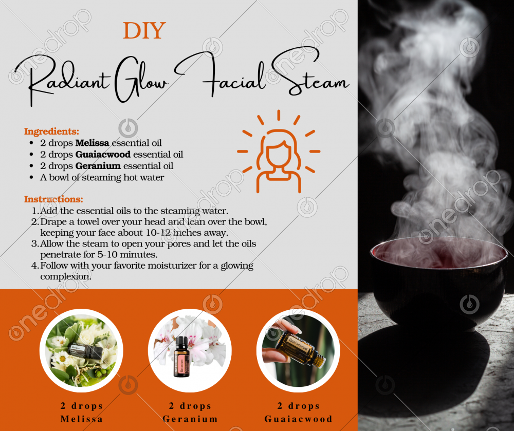 Ready to pamper your skin? Just mix 2 drops each of Melissa, Guaiacwood, and Geranium essential oils into a bowl of hot, steamy water. 🫧