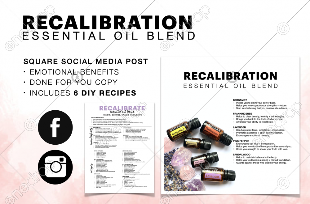 Complete Square Social Media Post: Recalibrate Essential Oil Blend with done for you copy of 6 DIY Recipes