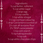 Red Velvet White Chocolate Chip Cookie Recipe with Cardamom Oil.