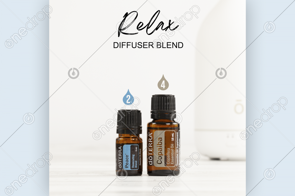 High resolution square picture of the Relax diffuser blend featuring Peace® + Copaiba.