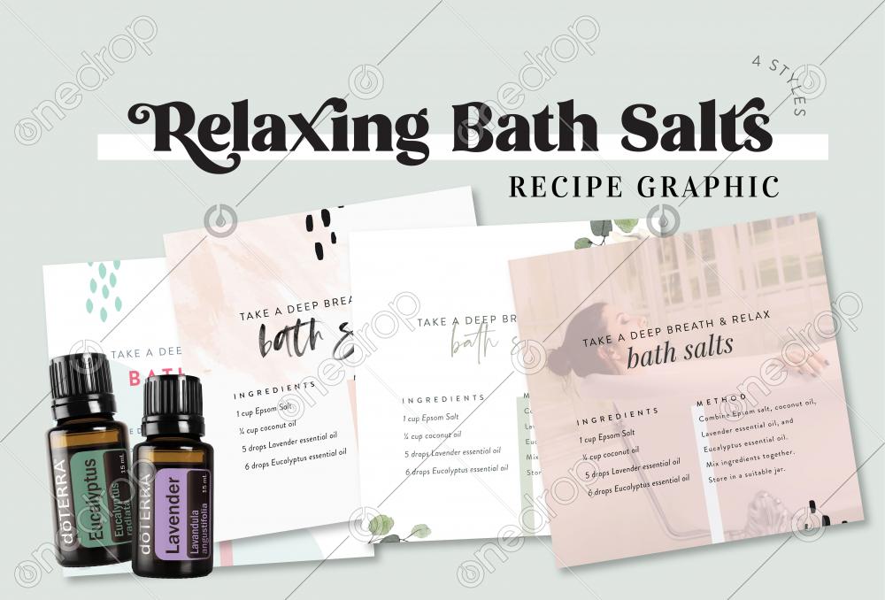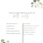 A square recipe graphic using epsom salts, coconut oil, Lavender and Eucalyptus to make a relaxing bath salt to soak your worries away,