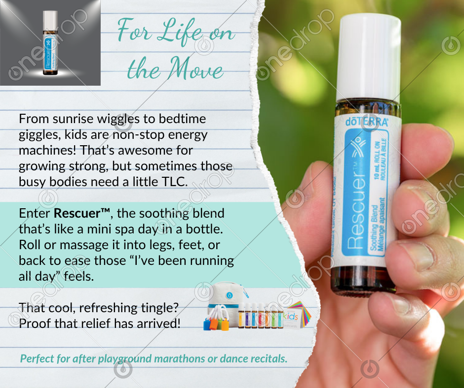 Enter Rescuer, the soothing blend that’s like a mini spa day in a bottle. 💆♂️💙 Roll or massage it into legs, feet, or back to ease those “I’ve been running all day” feels.