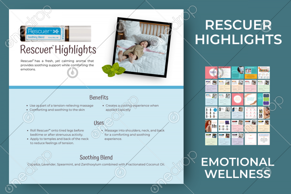 This graphic is part of the Emotional Wellness Collection with the Done-For-You-Copy. The topics include mood & oils, AromaTouch® Technique, and highlights of the Kid’s Collection and Emotional Aromatherapy® Kit essential oils. (The Done-For-You-Copy is downloaded separately). All the graphics for the collection are below!
