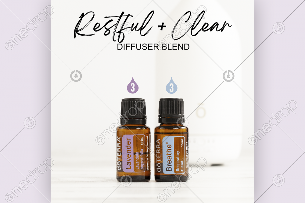 High resolution square picture of the Restful and Clear diffuser blend featuring Breathe® + Lavender.