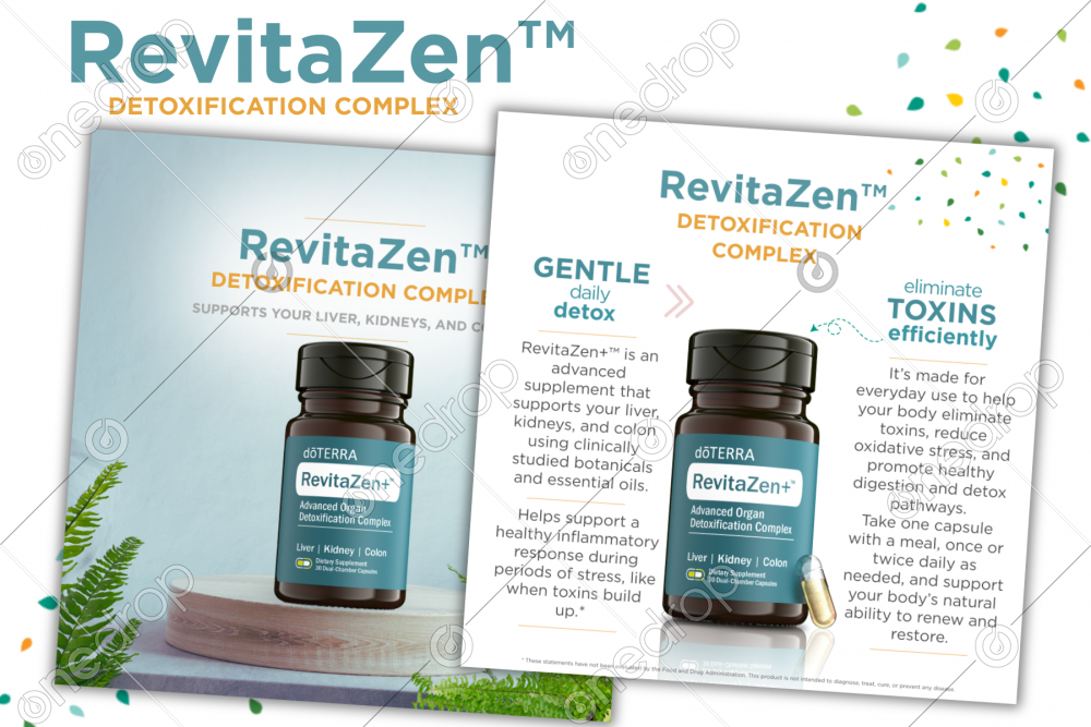 RevitaZen+ is an advanced supplement complex that’s safe to take every day to support the liver, kidneys, and colon—key organs involved in the body’s natural detoxification processes. Each dual-chamber capsule delivers clinically studied botanicals—including black cumin, milk thistle, and artichoke— with RevitaZen™ Detoxification Blend and Cumin essential oil. Together, these powerful ingredients help maintain optimal organ function and support the body’s natural ability to manage internal and environmental stressors.* Unlike harsh cleanses that can disrupt digestion or trigger unwanted elimination, RevitaZen+ works with your body to help it do what it was designed to do.