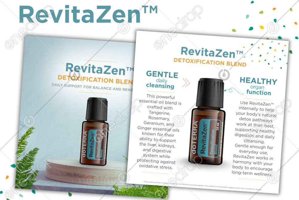 RevitaZen Detoxification Blend is optimized with key essential oils that, based on preclinical research, provide daily support for healthy organ function and promote the body’s natural detoxification process when used internally.* Unlike harsh detox products that focus on quick fixes, RevitaZen works in harmony with the body to encourage long-term wellness.*