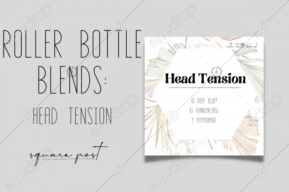 Square post detailing the oils used to make up the roller blend that can help relieve head tension. Watercolor, boho, floral.