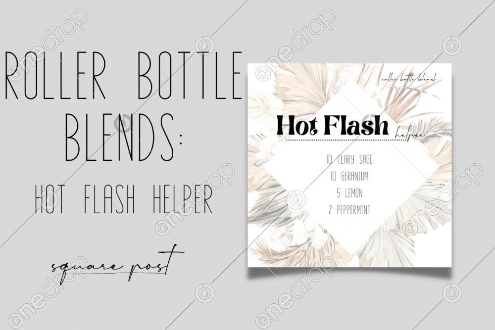 Square post detailing the oils needed to make a roller that can help alleviate hot flash symptoms. Blend can also be mixed into a spray bottle with filtered water for a cooling mist.