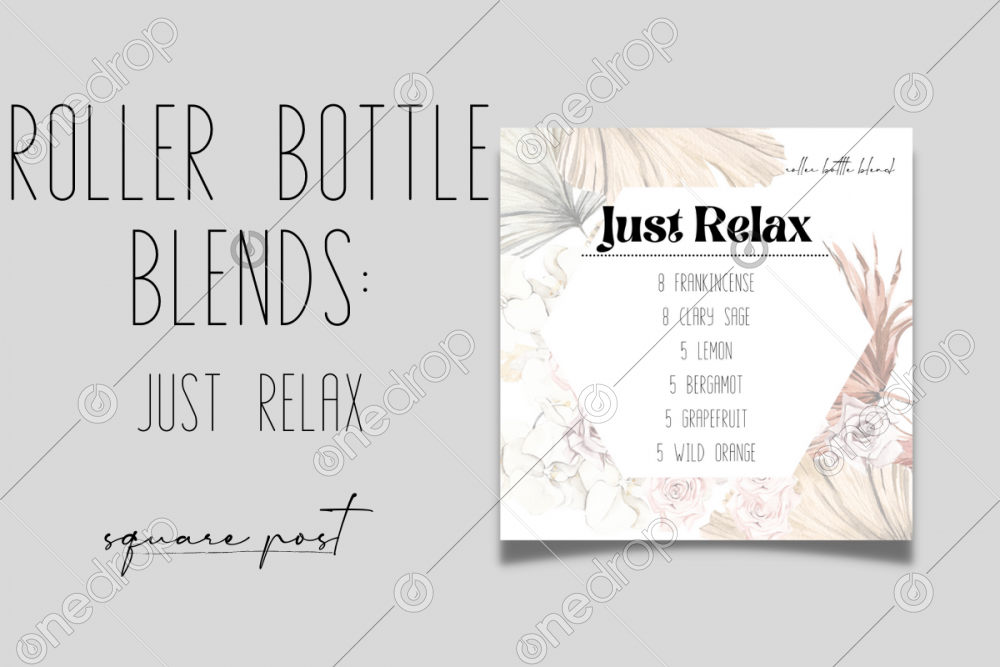 Square post detailing the oils that make up this ultra relaxing blend. Watercolor, boho, floral.