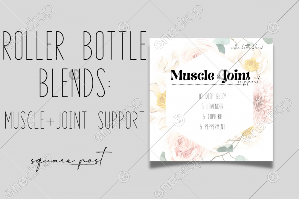 Square post detailing the oils used to make the roller that will support healthy muscles and joints. Watercolor, boho, floral.