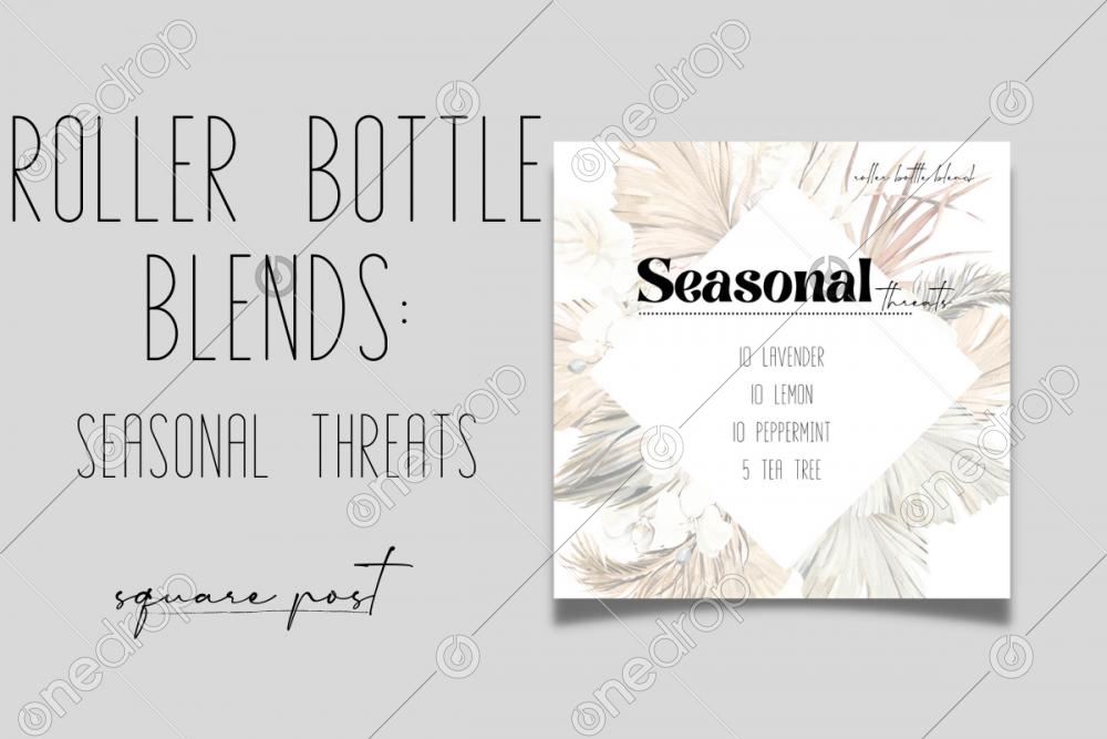 Square post detailing the oils that make up the roller to support you when seasonal threats can occur. Watercolor, boho, floral.