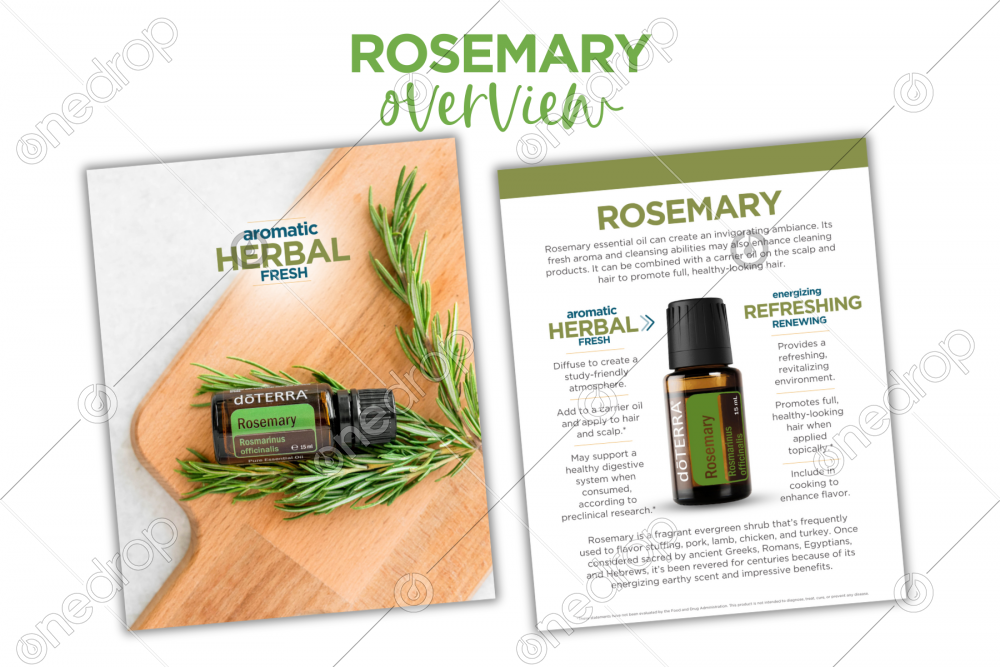 CPTG Certified Pure Tested Grade® Rosemary essential oil can create an invigorating ambiance. Its fresh aroma and cleansing abilities may also enhance cleaning products. It can be combined with a carrier oil on the scalp and hair to promote full, healthy-looking hair. Early research suggests Rosemary may help support a healthy digestive system when taken internally, though further studies are needed.*