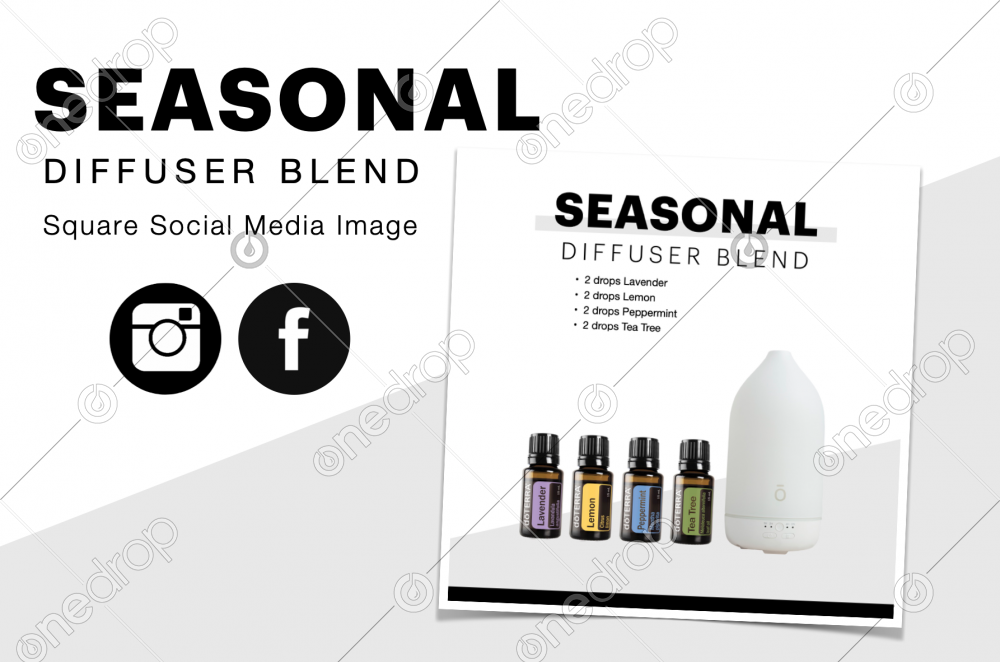 Seasonal Diffuser Blend Square Social Media Image for easy posting + education.