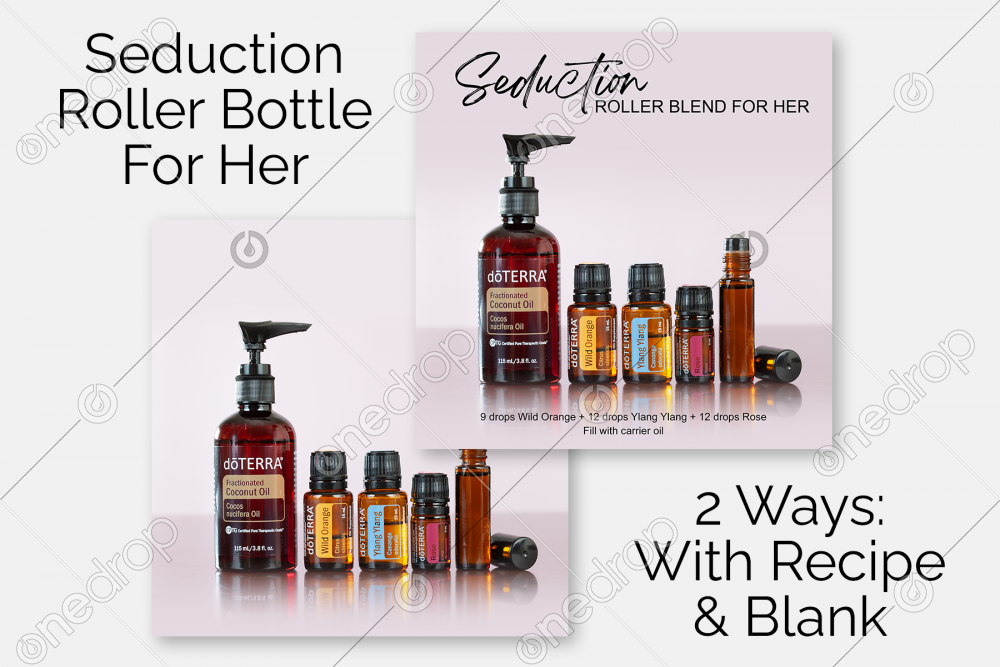 High resolution square image of the Seduction roller blend with Ylang Ylang, Wild Orange, Rose, FCO and a roller. One image, two ways: With name and recipe Blank Find more from this collection HERE 📌Please make sure to watermark images with your name/logo to protect your investment and make sure One Drop contributors are fairly compensated for their work. Kindly direct your sharers back to One Drop to download their own 😀