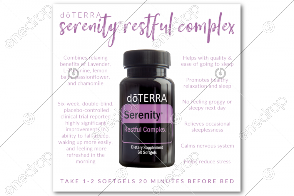 This square graphic features key points and usage instructions for dōTERRA Serenity® Restful Complex Softgels. My favorite natural aid for a more restful sleep!