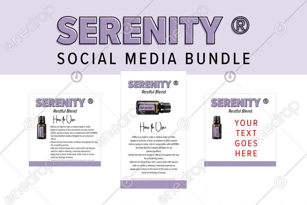 These graphics showcase suggested uses for Serenity® essential oil, as well as give space for you to enter your own information.