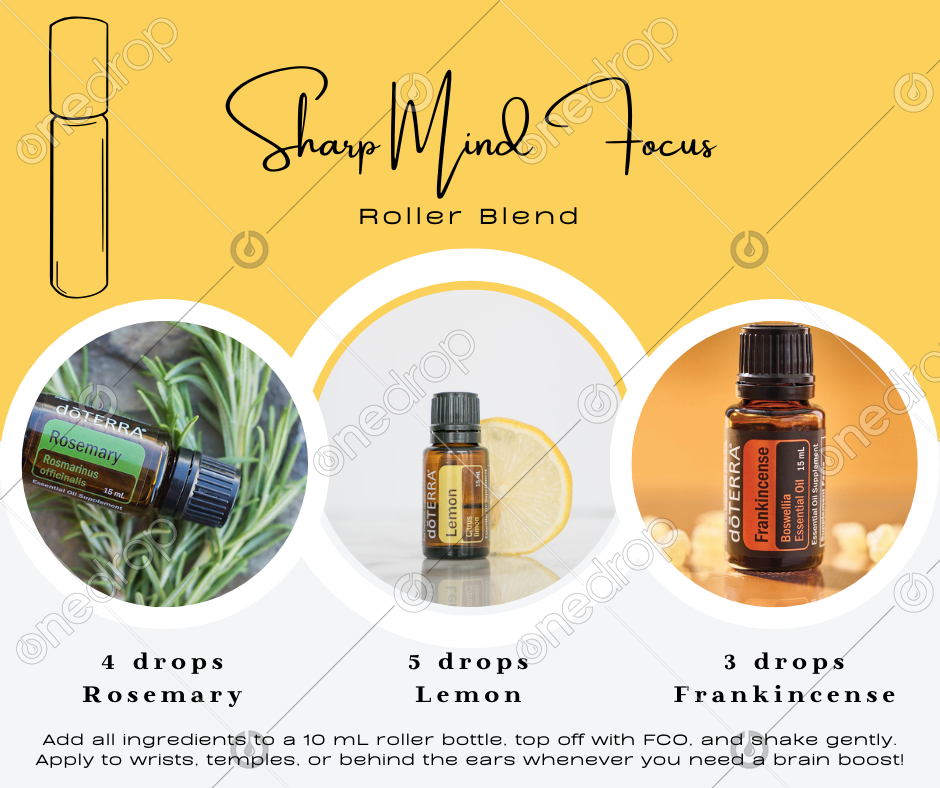 Lemonâs bright and uplifting aroma keeps your mind clear, Rosemary supports memory and concentration, while Frankincense brings grounding and clarityâa powerhouse blend for ultimate mental focus!