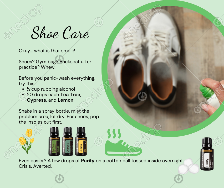 Shake in a spray bottle, mist the problem area, let dry. For shoes, pop the insoles out first. 🙌