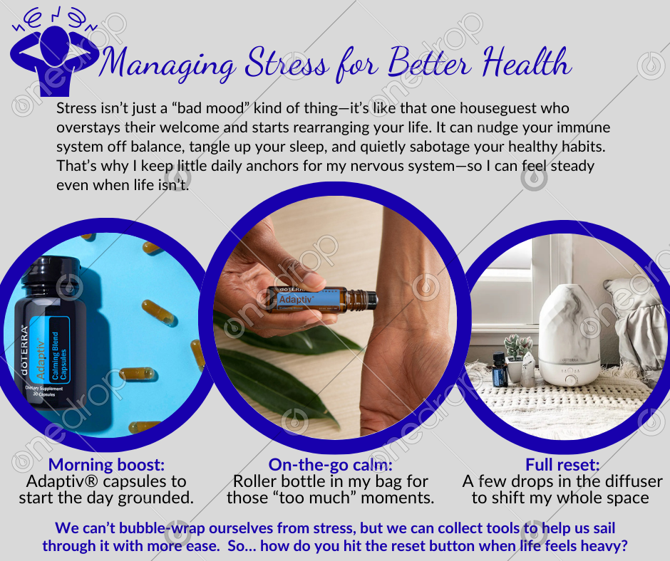 Here’s the sneaky thing about stress: when it hangs around too long, your body thinks it’s in nonstop survival mode. That can weaken your immune system and nudge you toward less-than-great choices with food, sleep, and movement. Cue the stress snowball. ❄️